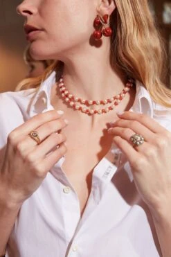 Collier Sautoir En Perles De Culture Et De Corail
