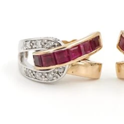 Boucles D’oreilles Puces GUY LAROCHE En 2 Ors, Rubis Et Diamants