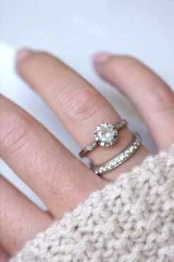 Le solitaire est La bague de fiançailles, gage d’amour par excellence, elle existerait depuis le XVe siècle. Il s’agit à chaque fois d’un anneau serti d’un diamant principal, parfois avec un épaulement de diamants sur les côté.